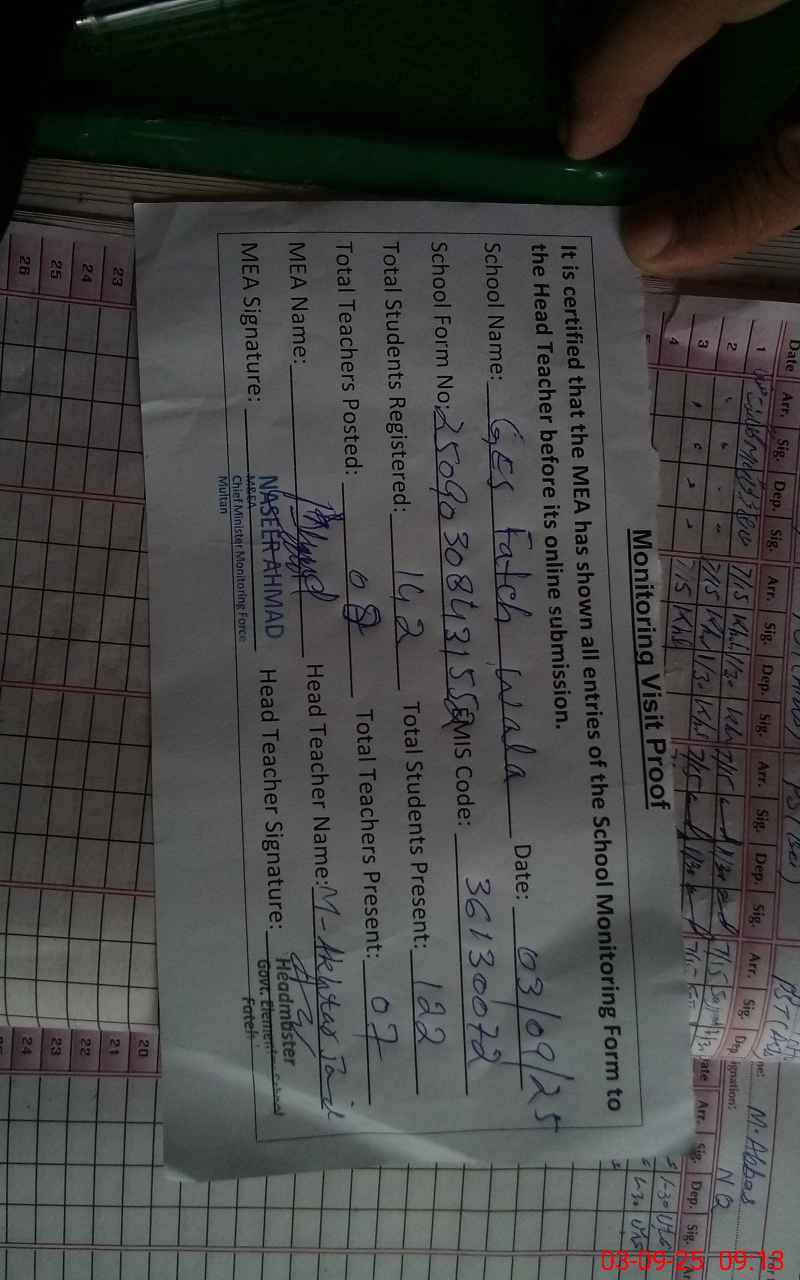 | EMIS Code: 36130072 | Name of School: GES FATEH WALA | |||