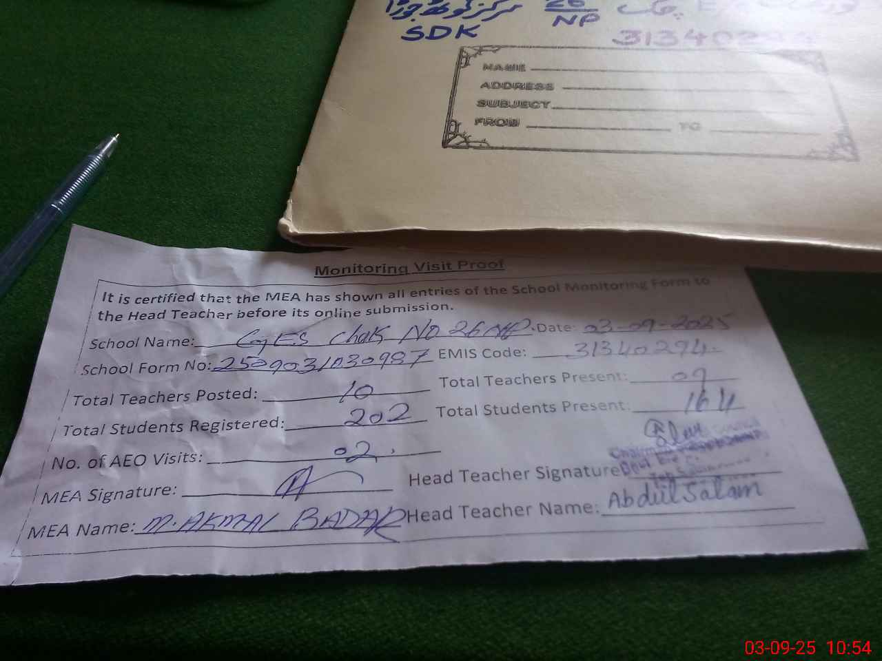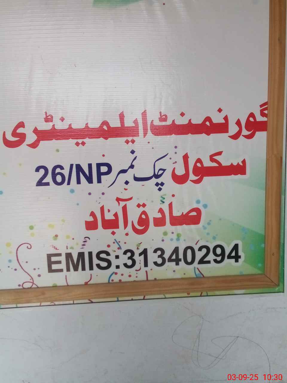 | EMIS Code: 31340294 | Name of School: GES CHAK NO. 26 NP | |||