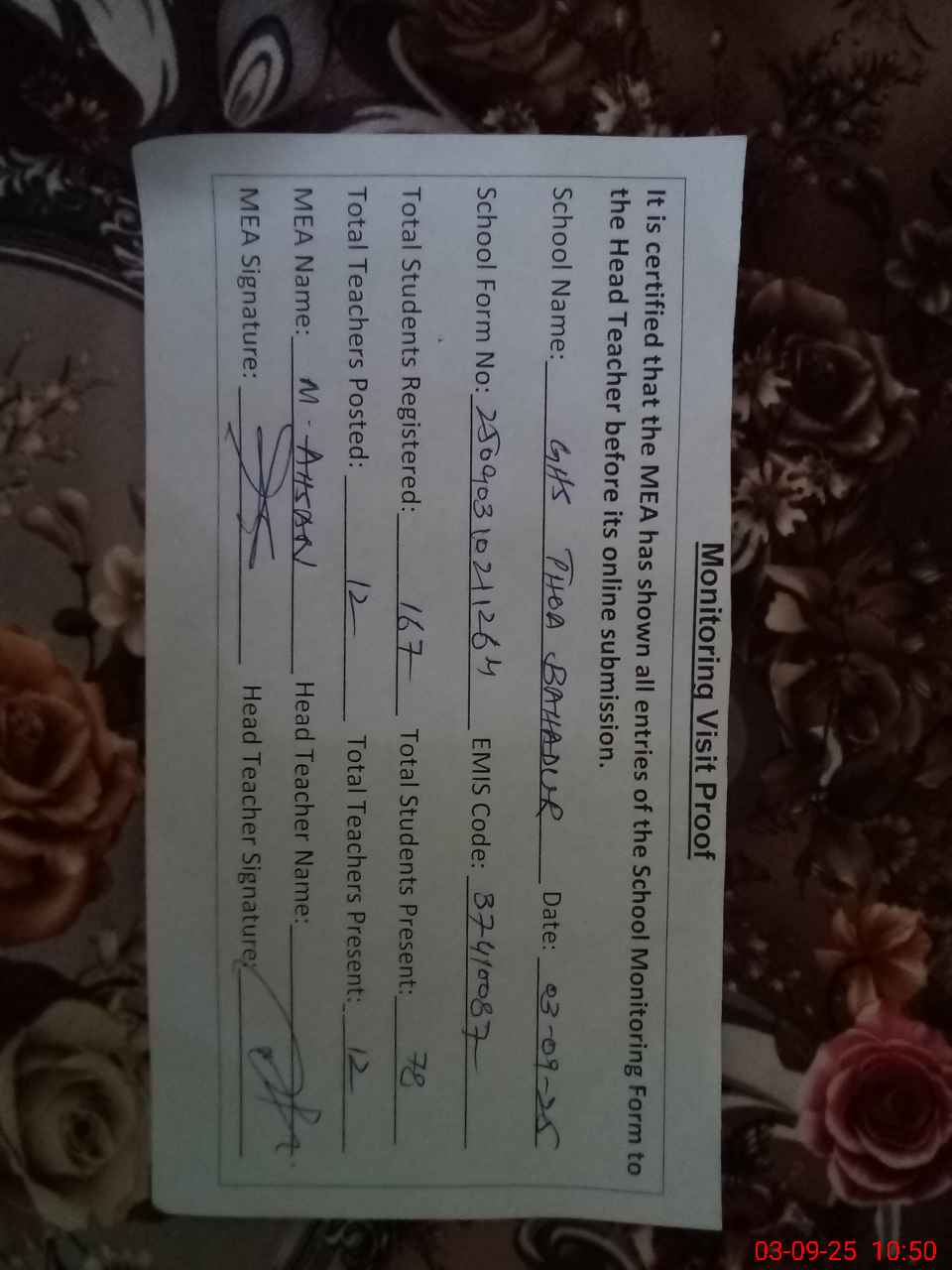| EMIS Code: 37410087 | Name of School: GHS THOHA BAHADUR | |||