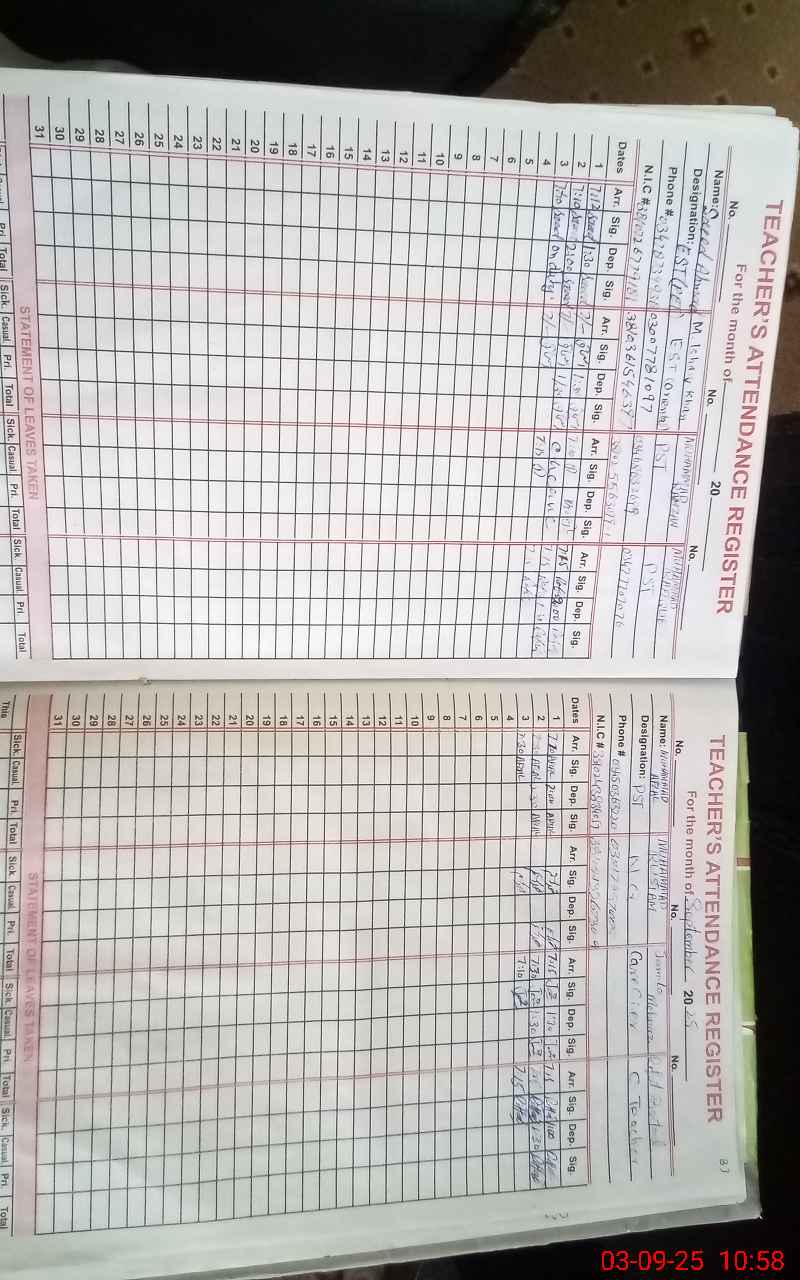 | Name: Mu**** Ha**** Designation: (School Headmaster's/Headmistress's) SSE Phone/Cell Number: 03**** |