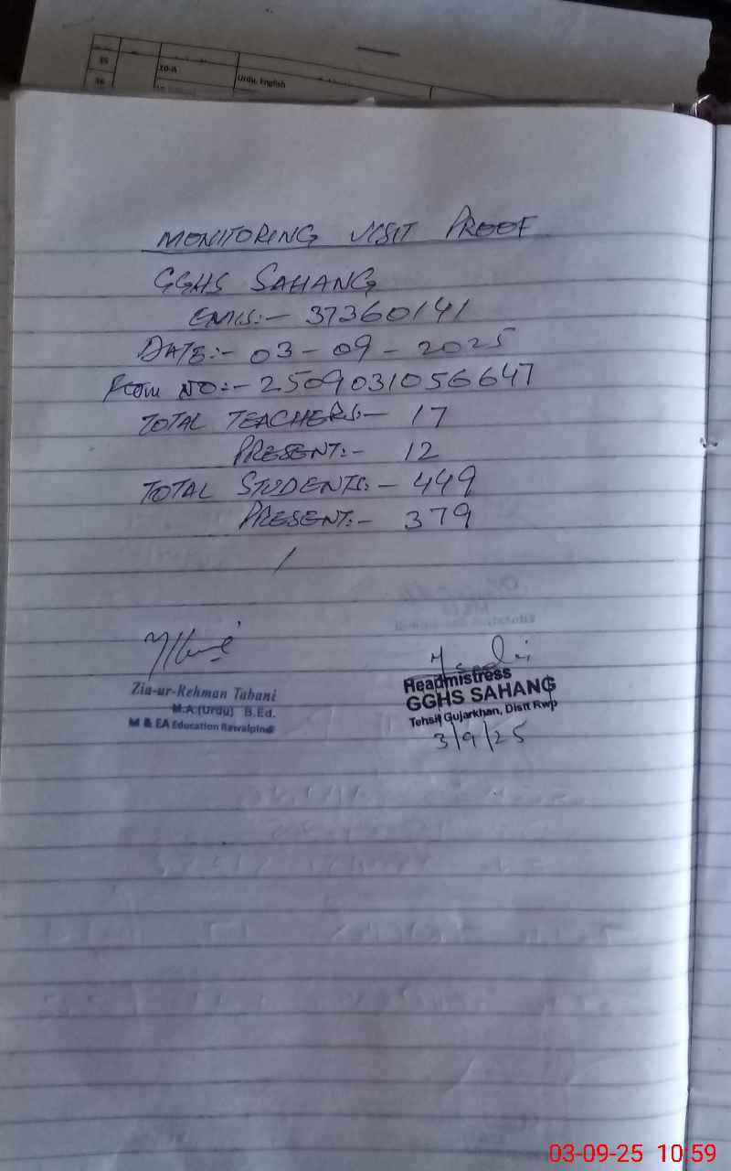 | EMIS Code: 37360141 | Name of School: GGHS SAHANG | |||