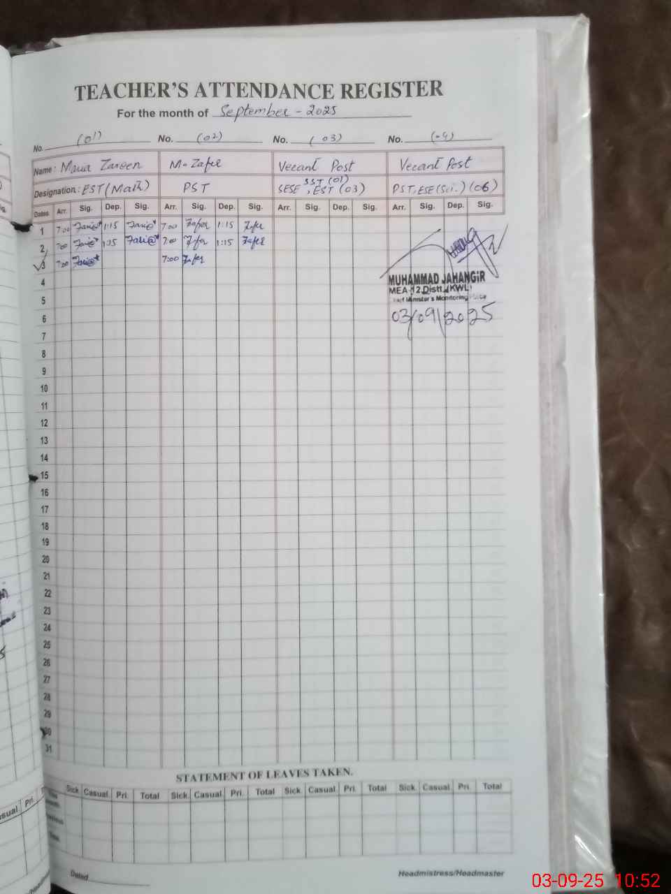 | Name: MA**** ZA**** Designation: (School Headmaster's/Headmistress's) EST MATH Phone/Cell Number: 03**** |