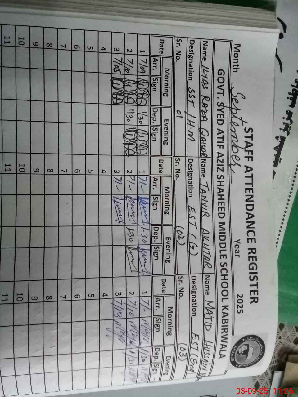 | Name: Il**** Ra**** Qa**** Designation: (School Headmaster's/Headmistress's) SST Arts Phone/Cell Number: 03**** |