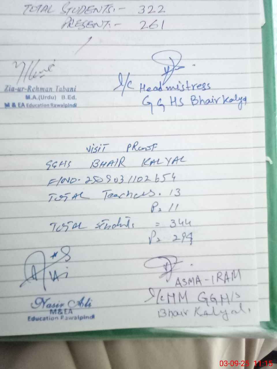 | EMIS Code: 37360119 | Name of School: GGHS BHAIR KALYAL | |||