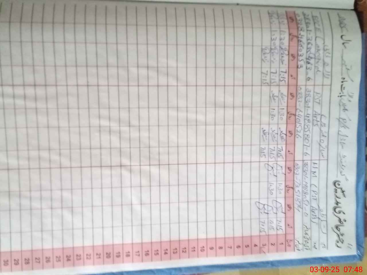| CNIC | Full Name | Designation | R/C | Absence During Last Calender Month |