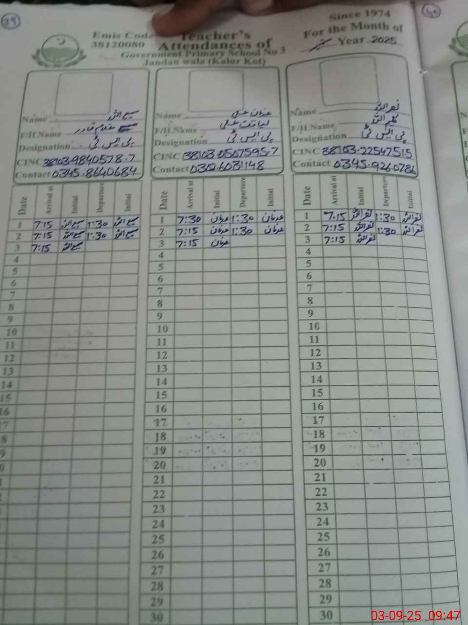 | EMIS Code: 38120080 | Name of School: GPS JANDAN WALA NO.3 | |||