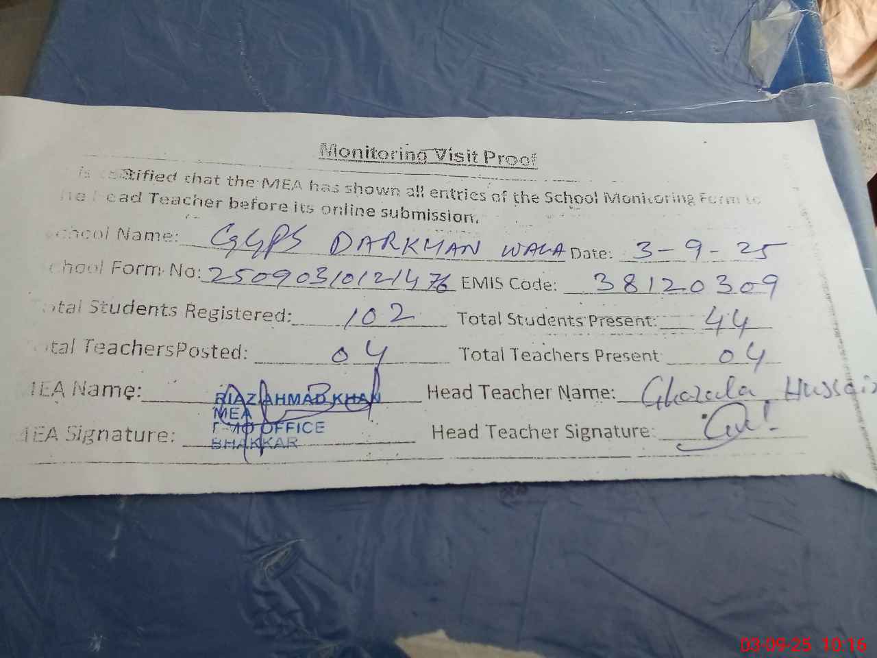 | EMIS Code: 38120309 | Name of School: GGPS DARKHAN WALA | |||