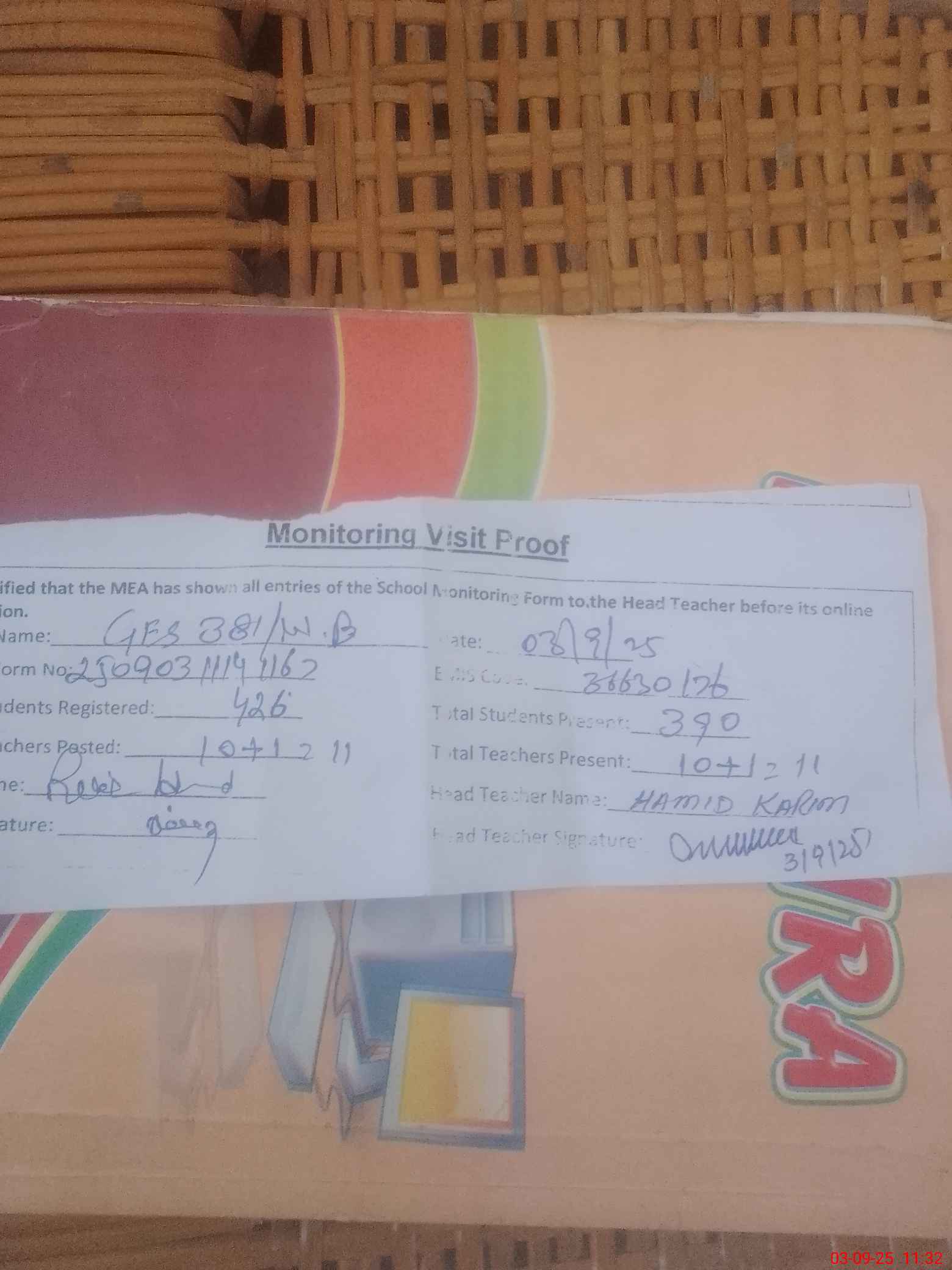 | EMIS Code: 36630176 | Name of School: GHS 381/WB | |||