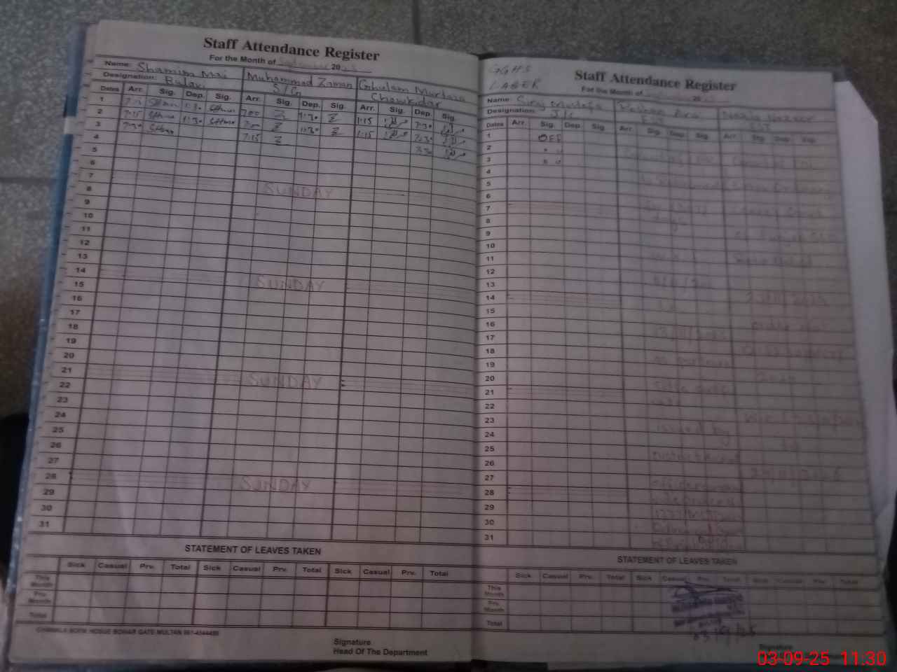 | CNIC | Full Name | Designation | R/C | Absence During Last Calender Month |