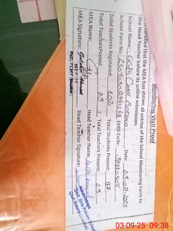 | Attendance Register | Head Teacher | MEA with School | Visit Proof |