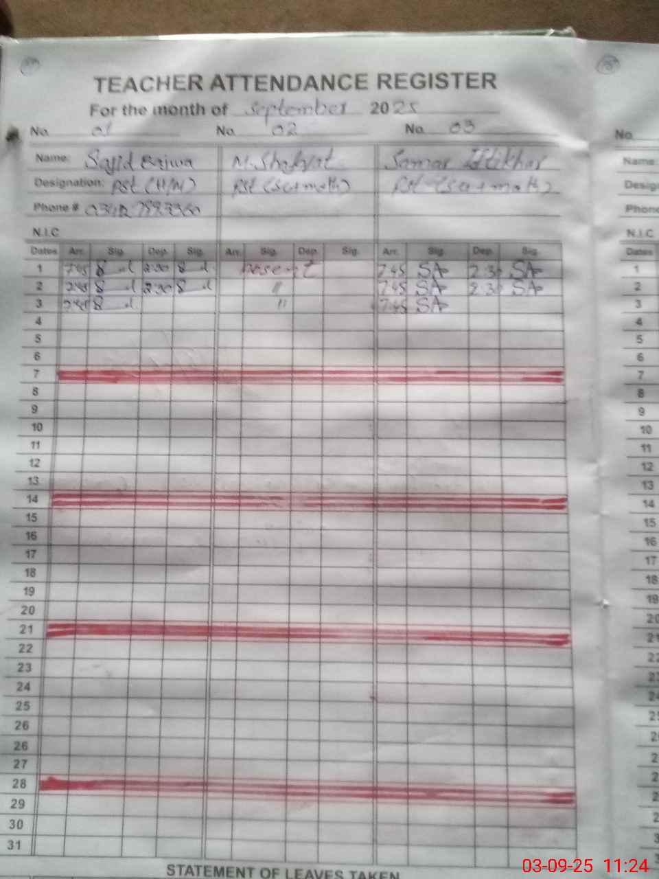 | Name: SA**** RA**** BA**** Designation: (School Headmaster's/Headmistress's) PST Phone/Cell Number: 03**** |