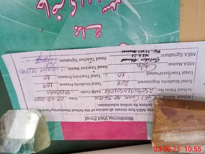 | Attendance Register | Head Teacher | MEA with School | Visit Proof |