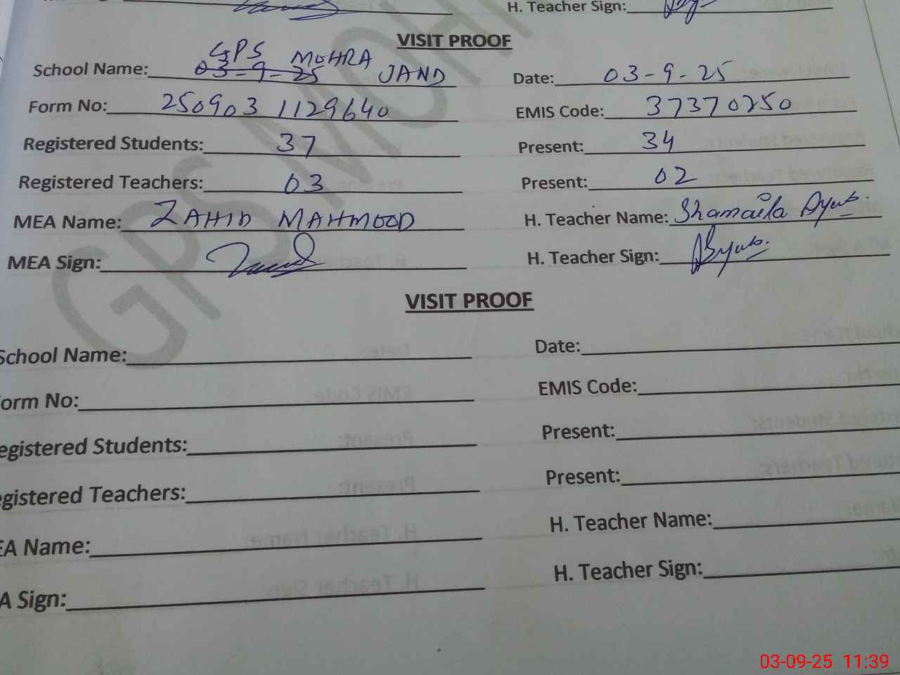 | EMIS Code: 37370250 | Name of School: GPS MOHRA JAND | |||