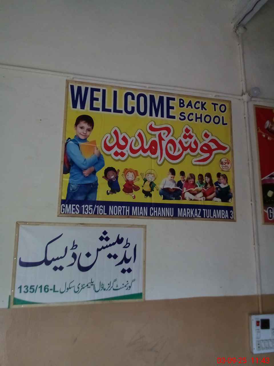 | EMIS Code: 36430077 | Name of School: GMES 135/16-L NORTH, MIAN CHANNU | |||
