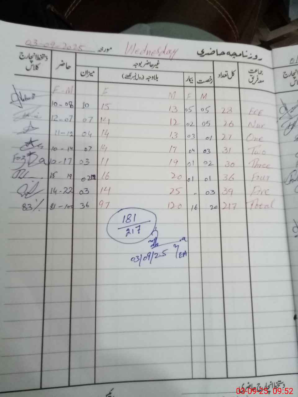 | No. of Students Present - Male | 8 | 0 | 7 | 12 | 14 | 17 | 19 | 22 | 99 | |||||||