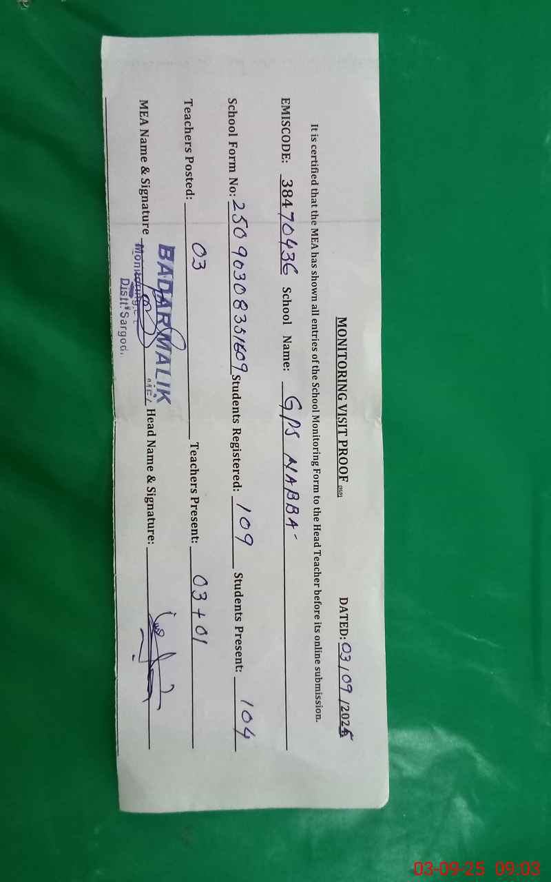 | EMIS Code: 38470436 | Name of School: GPS NABBA | |||