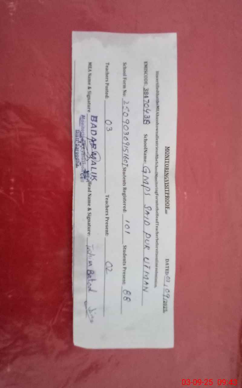 | EMIS Code: 38470438 | Name of School: GMPS SAID PUR UTMAN | |||