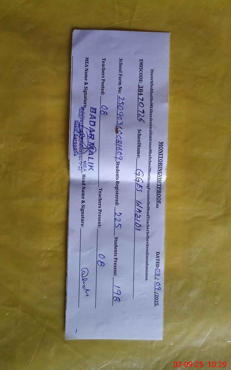 | EMIS Code: 38470726 | Name of School: GGES WAZIDI | |||