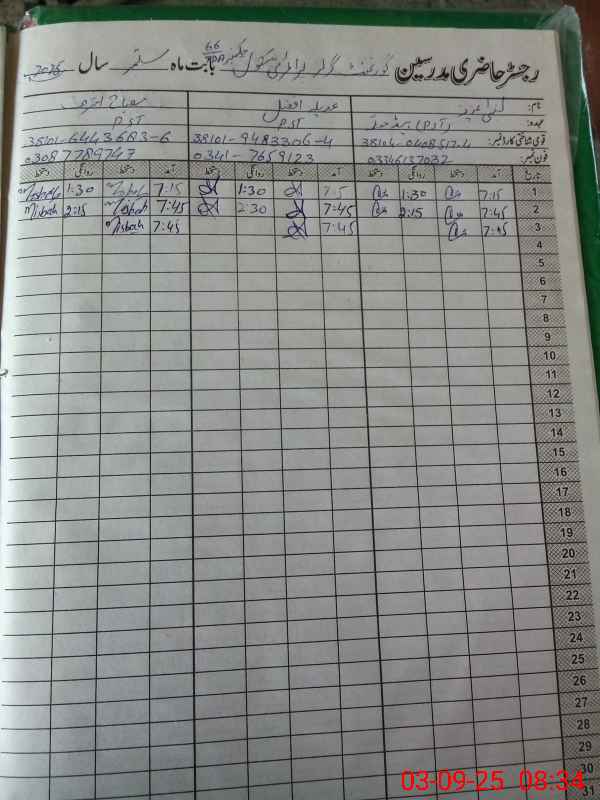 | Name: LU**** AZ**** Designation: (School Headmaster's/Headmistress's) PST Phone/Cell Number: 03**** |
