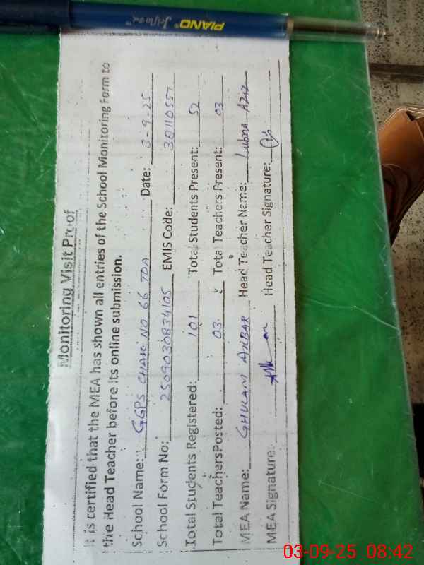 | Attendance Register | Head Teacher | MEA with School | Visit Proof |