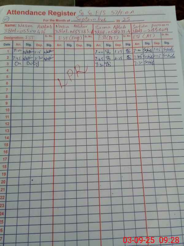 | 38**** | Na**** Ak**** | SST | Regular | 0 | 0 | 0 | 0 | 0 | 0 | 0 | 0 | 0 | Absent (Un-Authorized) |