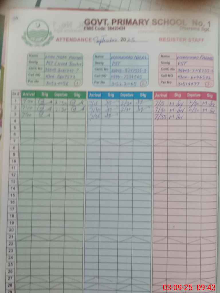 | Name: MI**** IH**** AH**** Designation: (School Headmaster's/Headmistress's) PST Phone/Cell Number: 03**** |