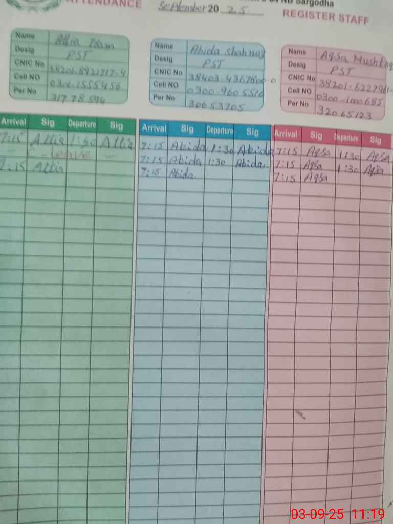 | Name: AT**** IR**** Designation: (School Headmaster's/Headmistress's) PST Phone/Cell Number: 03**** |
