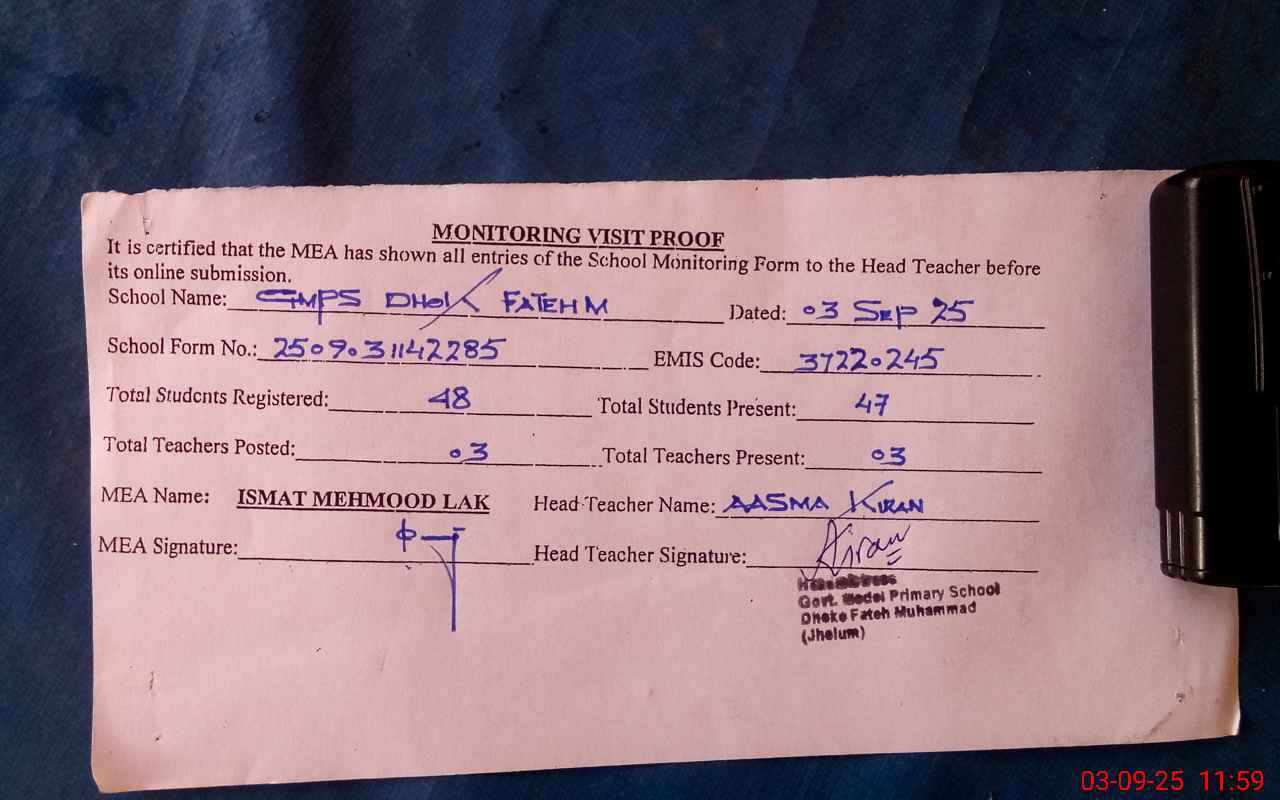 | EMIS Code: 37220245 | Name of School: GGPS DHOK FATEH MUHAMMAD | |||
