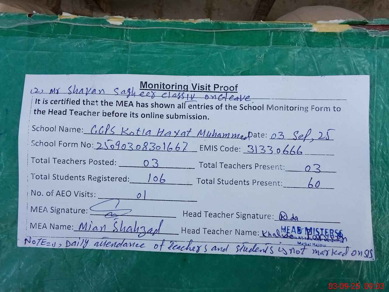 | EMIS Code: 31330666 | Name of School: GGPS KOTLA HAYAT MUHAMMAD | |||