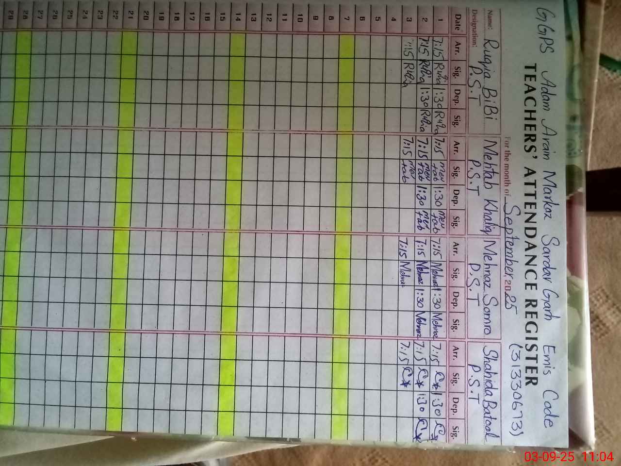 | EMIS Code: 31330673 | Name of School: GGPS ADAM ARAIN | |||