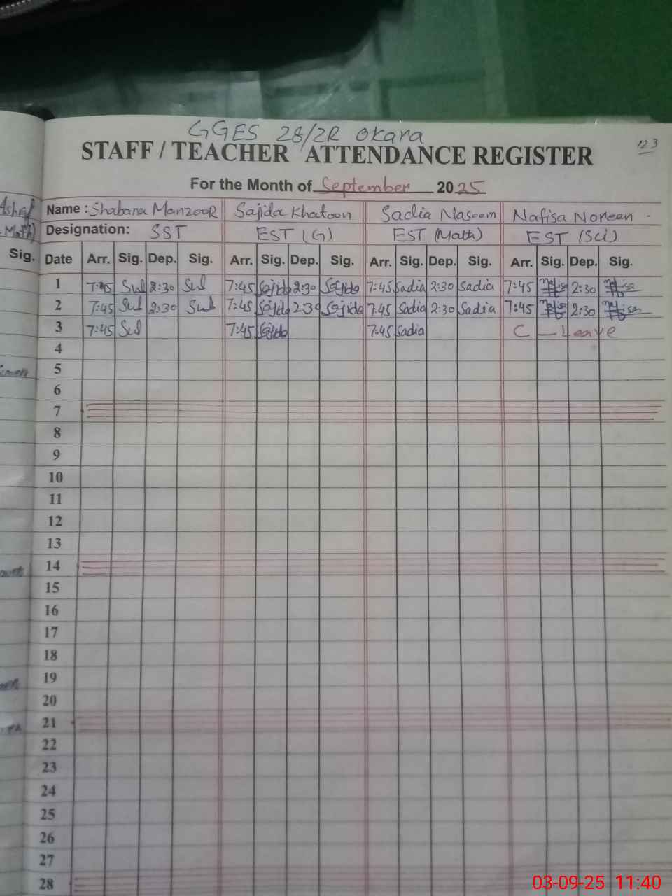 | District: OKARA | Tehsil: OKARA | Markaz: 33/2R - FEMALE | Level: Middle | |