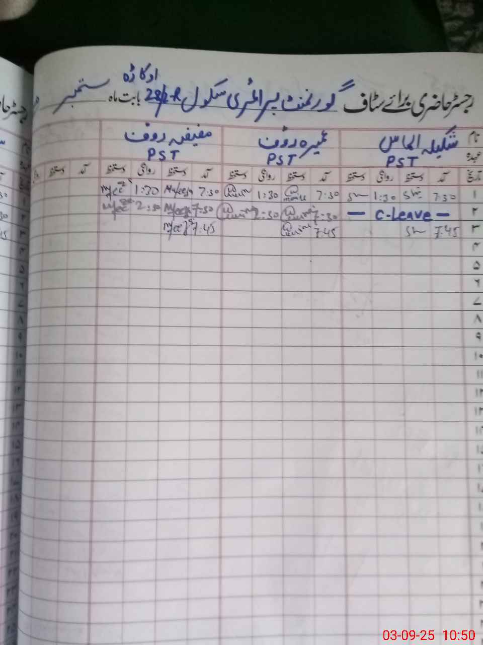 | Name: Um**** Ra**** Designation: (School Headmaster's/Headmistress's) PST Phone/Cell Number: 03**** |