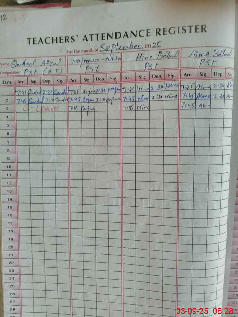 | Name: QA**** AF**** Designation: (School Headmaster's/Headmistress's) PST Phone/Cell Number: 03**** |