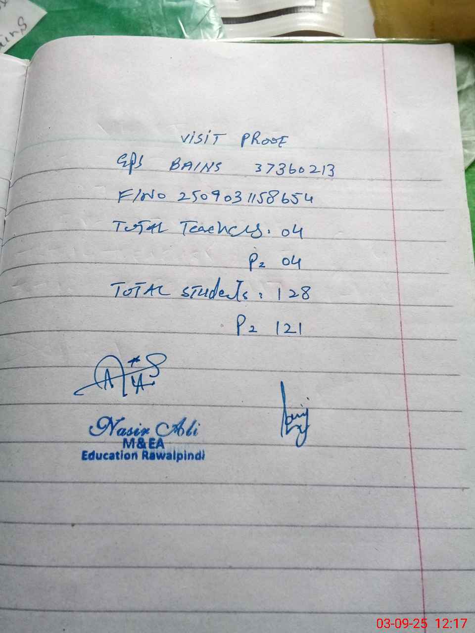 | EMIS Code: 37360213 | Name of School: GPS BAINS | |||