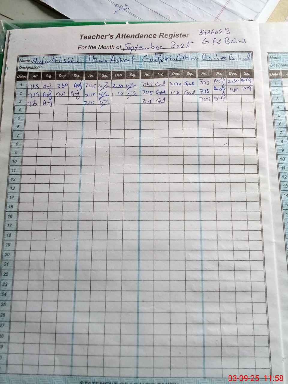 | Name: AB**** HU**** Designation: (School Headmaster's/Headmistress's) PST Phone/Cell Number: 03**** |