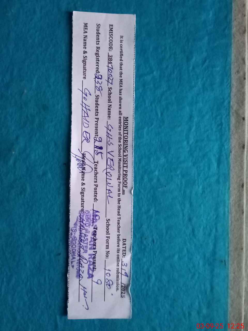 | EMIS Code: 38470027 | Name of School: GHS VERO WALA | |||