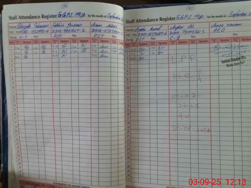 | EMIS Code: 31331229 | Name of School: GGPS CHAK NO. 103/P | |||