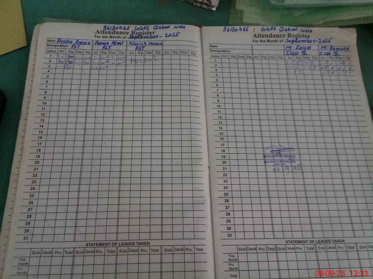 | 36**** | Na**** Ha**** | 1 | 1 | 0 | 0 | 0 | 0 | 0 | 0 | 0 | 0 | 0 | Absent (Un-Authorized) |