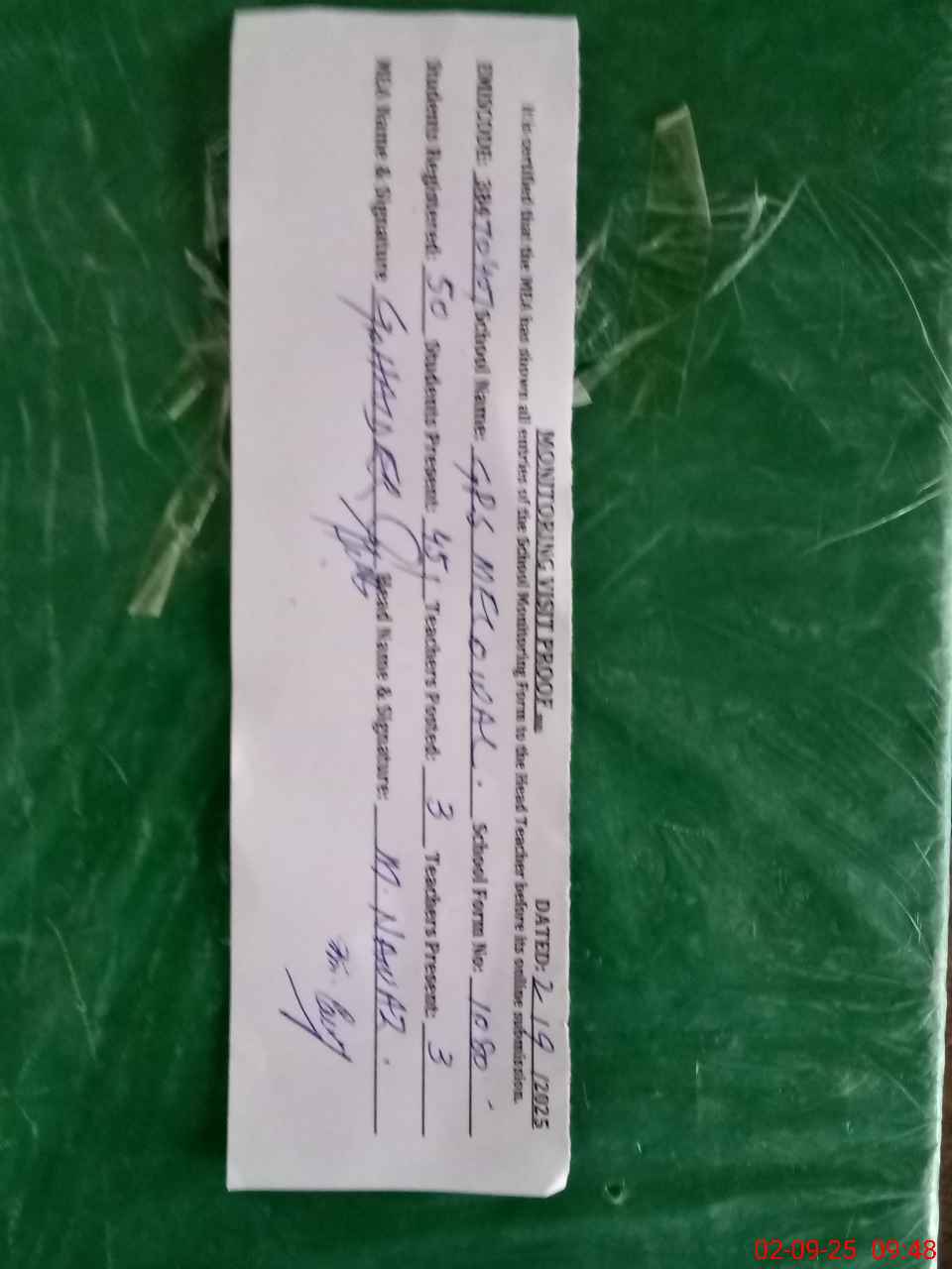 | Certified that this School was Inspected by the Undersigned MEA/DMO Today and the Information Stated Above is as Per Record. | |||||