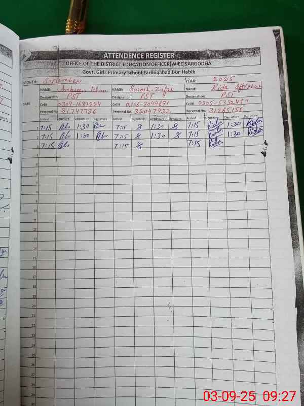 | Name: AM**** KH**** Designation: (School Headmaster's/Headmistress's) PST Phone/Cell Number: 03**** |