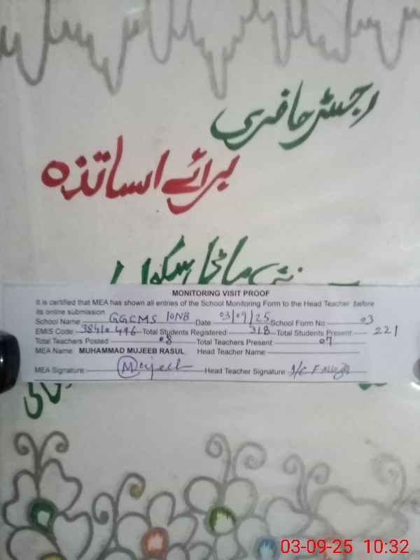 | EMIS Code: 38410496 | Name of School: GGCMS CHAK NO.10 NB | |||