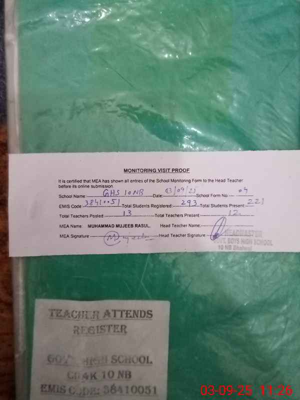 | EMIS Code: 38410051 | Name of School: GHS CHAK NO.10 NB | |||