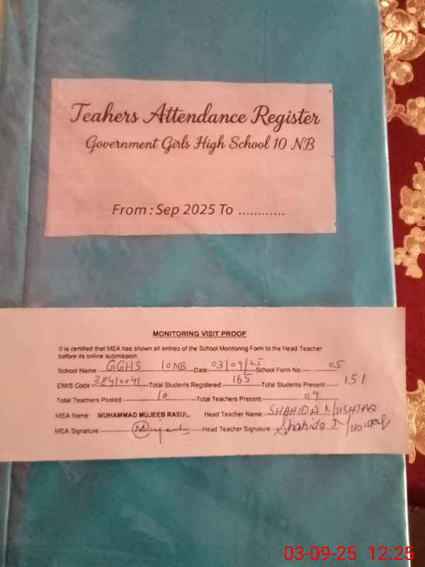 | EMIS Code: 38410041 | Name of School: GGHS CHAK NO.10 NB | |||