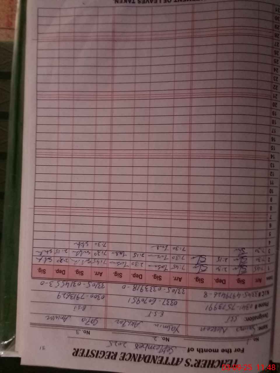 | Name: SA**** NO**** Designation: (School Headmaster's/Headmistress's) SST (GENERAL) Phone/Cell Number: 03**** |