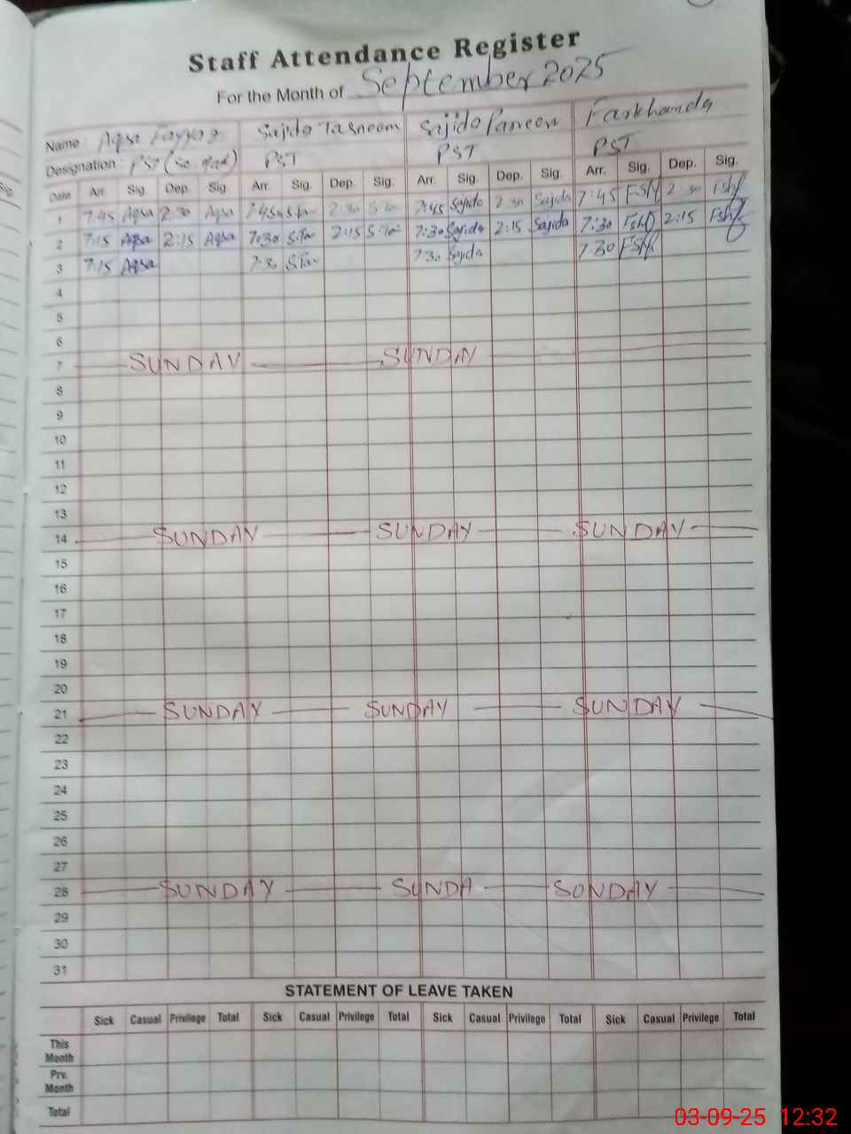 | Name: Aq**** Fa**** Designation: (School Headmaster's/Headmistress's) PST Phone/Cell Number: 03**** |