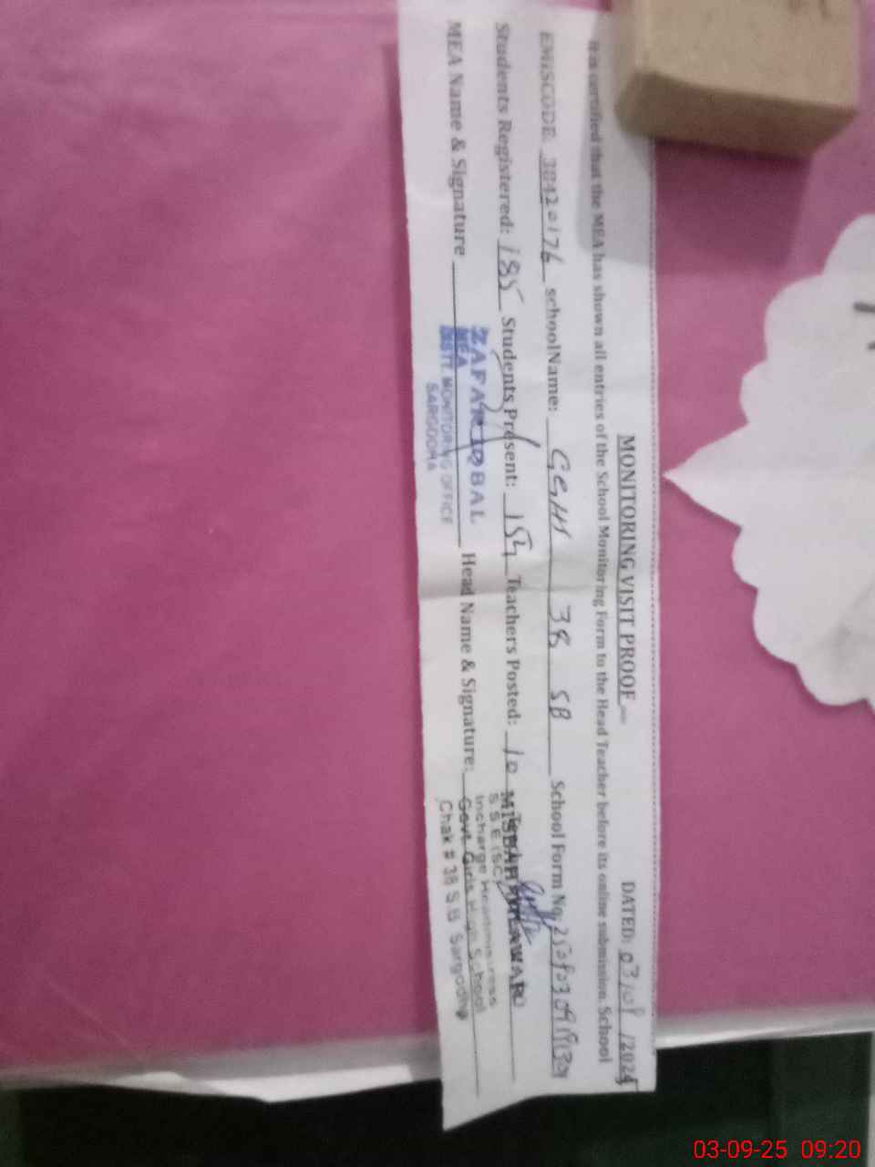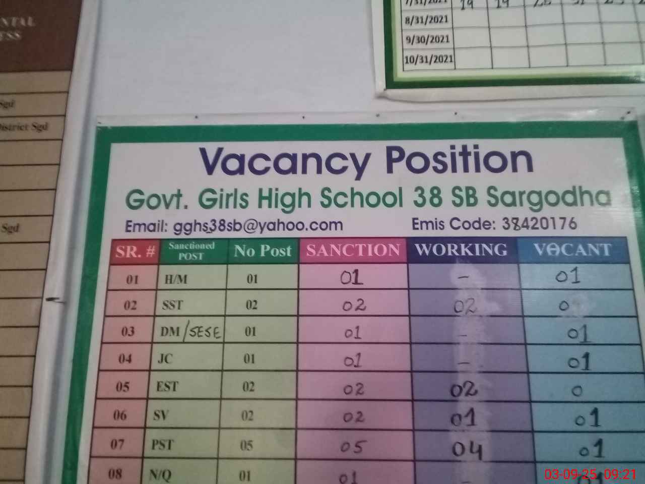| EMIS Code: 38420176 | Name of School: GGHS CHAK NO.38 SB | |||