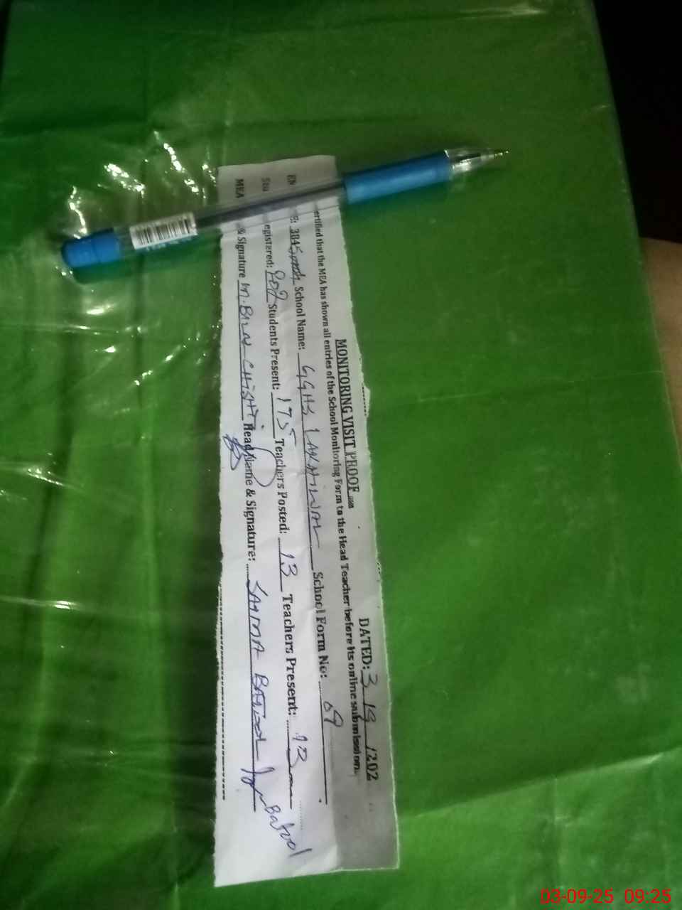 | Attendance Register | Head Teacher | MEA with School | Visit Proof |