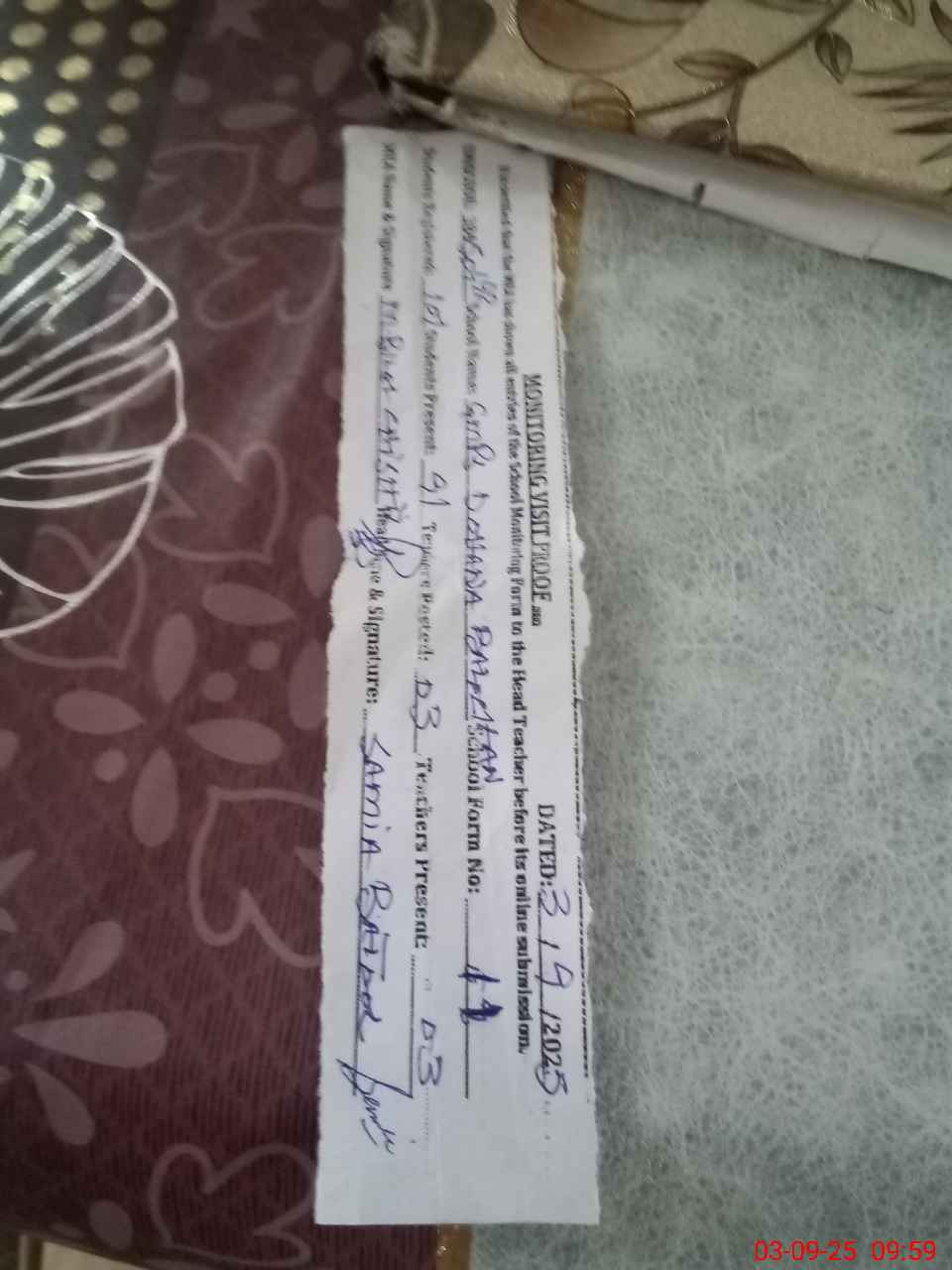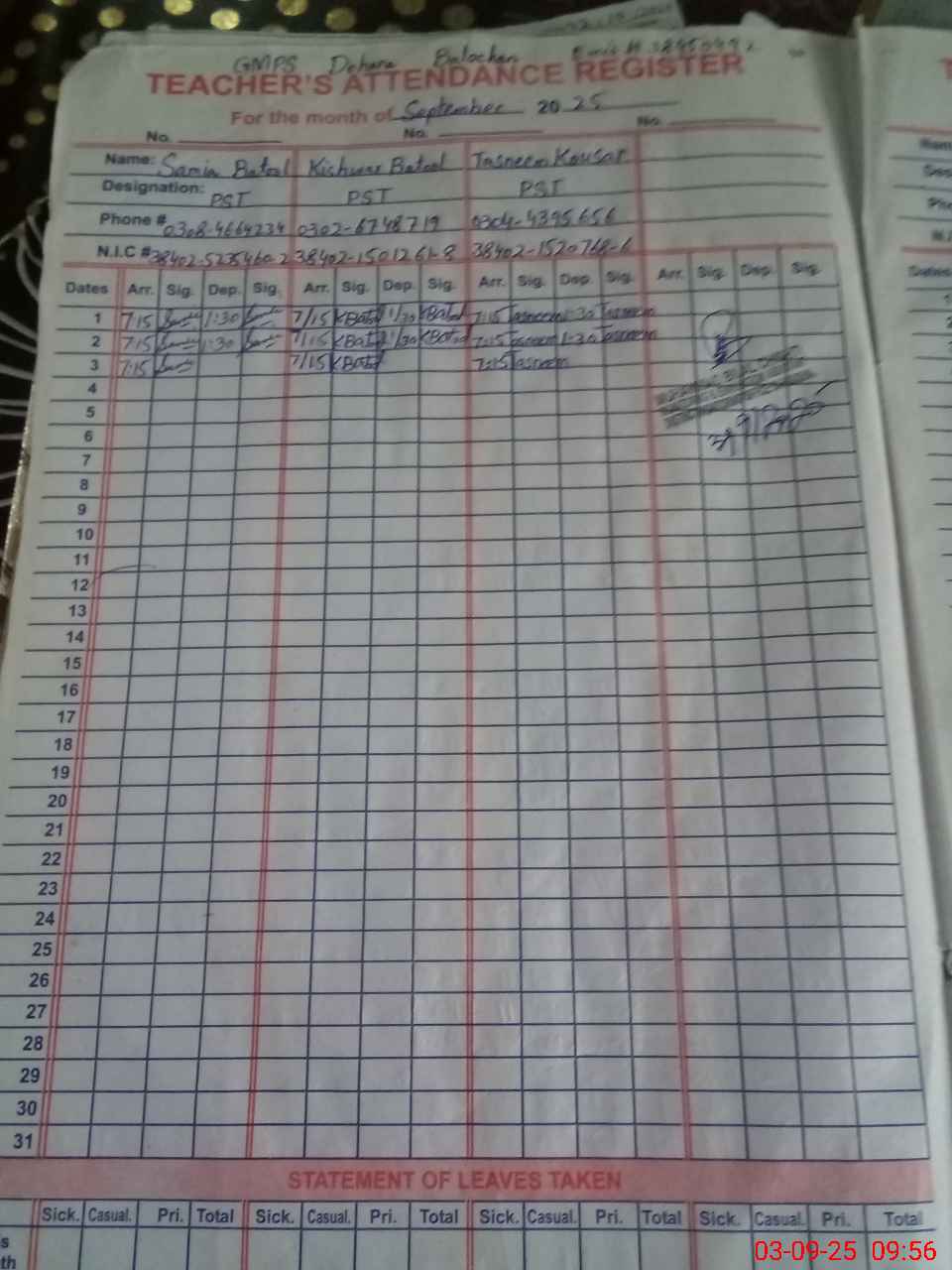 | Name: SA**** BA**** Designation: (School Headmaster's/Headmistress's) PST Phone/Cell Number: 03**** |