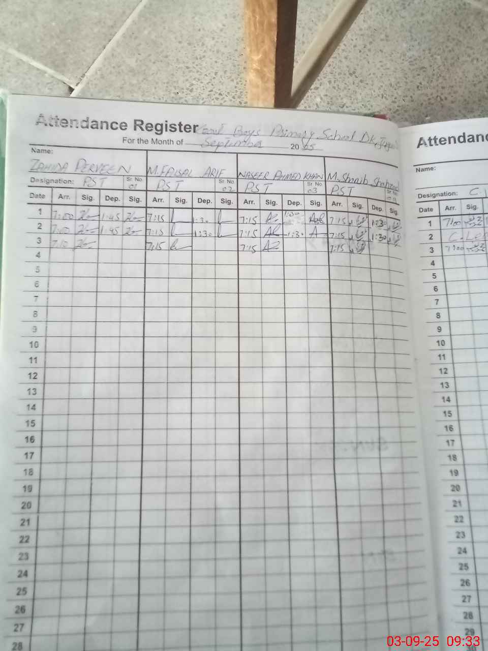 | CNIC | Full Name | Designation | R/C | Absence During Last Calender Month |