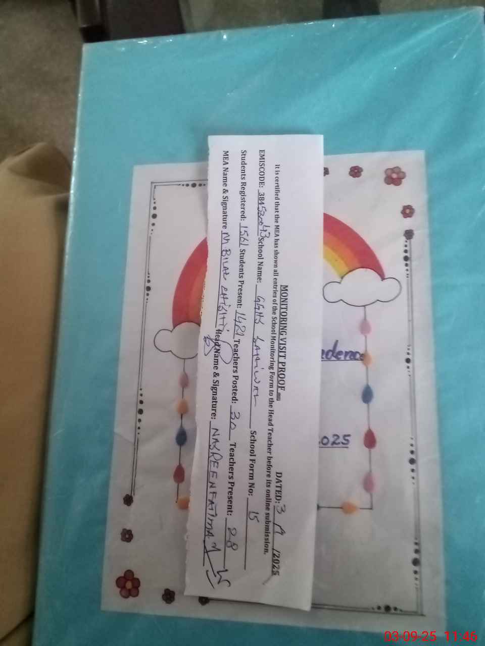 | EMIS Code: 38450043 | Name of School: GGHS SAHIWAL | |||